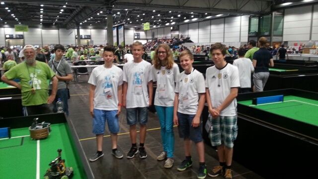 Nach der Ankunft um 11 Uhr meldeten wir uns an und bekamen die Tischnummer, sowie unseren Interviewtermin. Nach anfänglichen Schwierigkeiten unseren Arbeitsplatz zu finden, schafften wir es mit Hilfe der Organisatoren und konnten uns einrichten und orientieren. Daraufhin stellten wir die Roboter ein und testeten sie. Außerdem wurden wir noch am selben Tag interviewt.